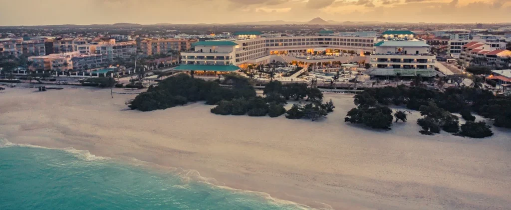 Fit for royalty as the name implies, this suite is furnished in blond woods and sea green hues. With spectacular oceanfront views, restful surroundings and an indulgent whirlpool bath, the suite allows you to recharge your batteries and celebrate your married life in total serenity. JOIA Aruba by Iberostar is a U-shaped architectural gem designed to highlight the crystal-clear waters and sun-drenched sands of Eagle Beach, just steps away from your home for a week (or two?) Play a round of golf at Tierra del Sol, Aruba’s only 18-hole course or board a catamaran for a snorkeling cruise with free-flowing mimosas. Book from our package section